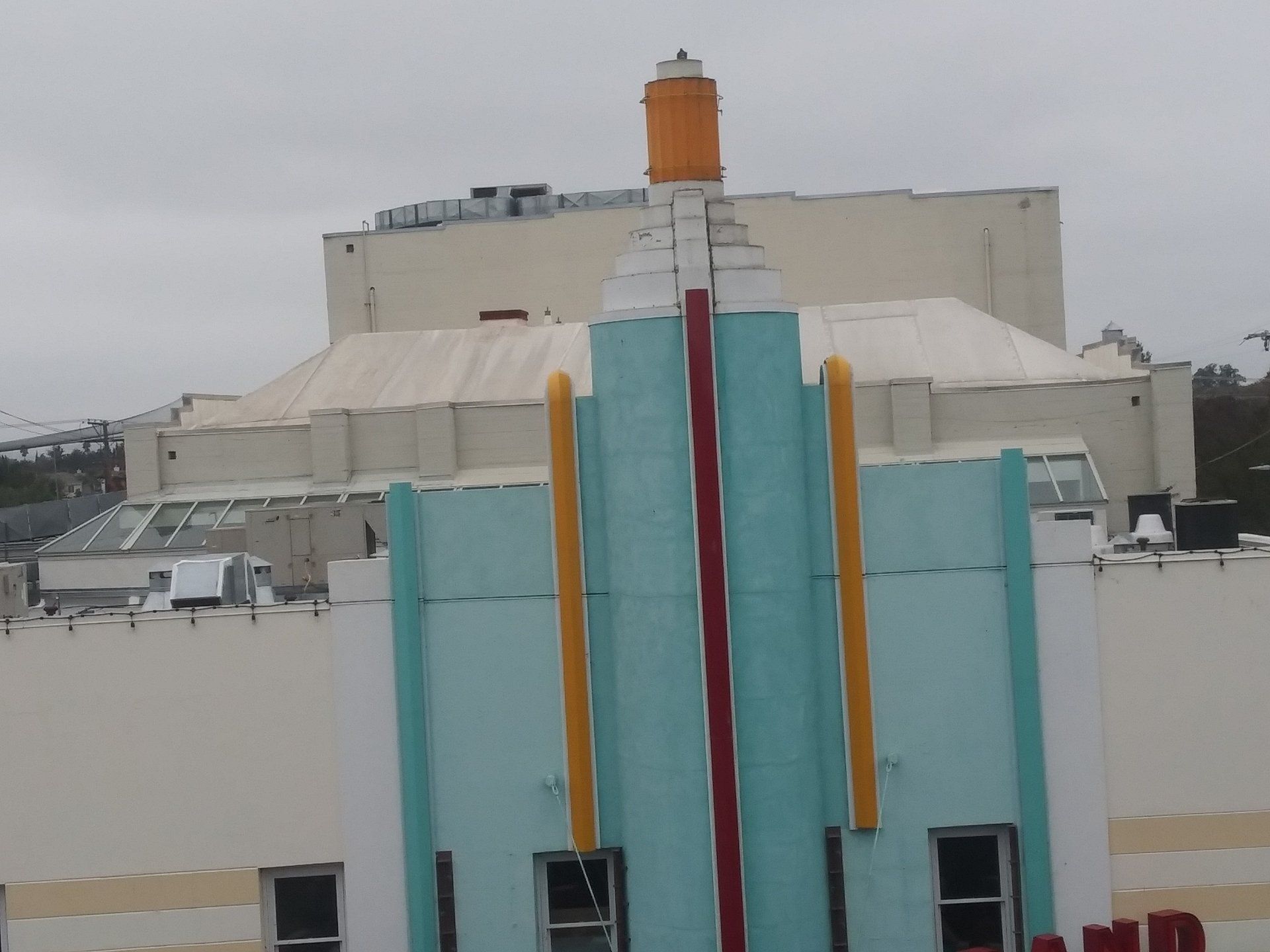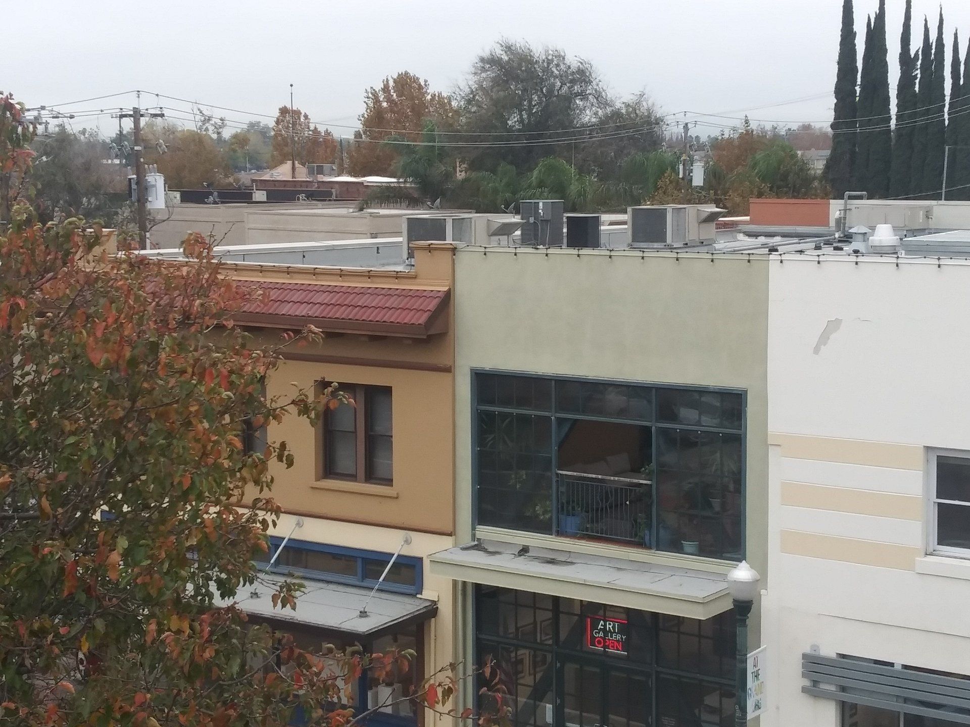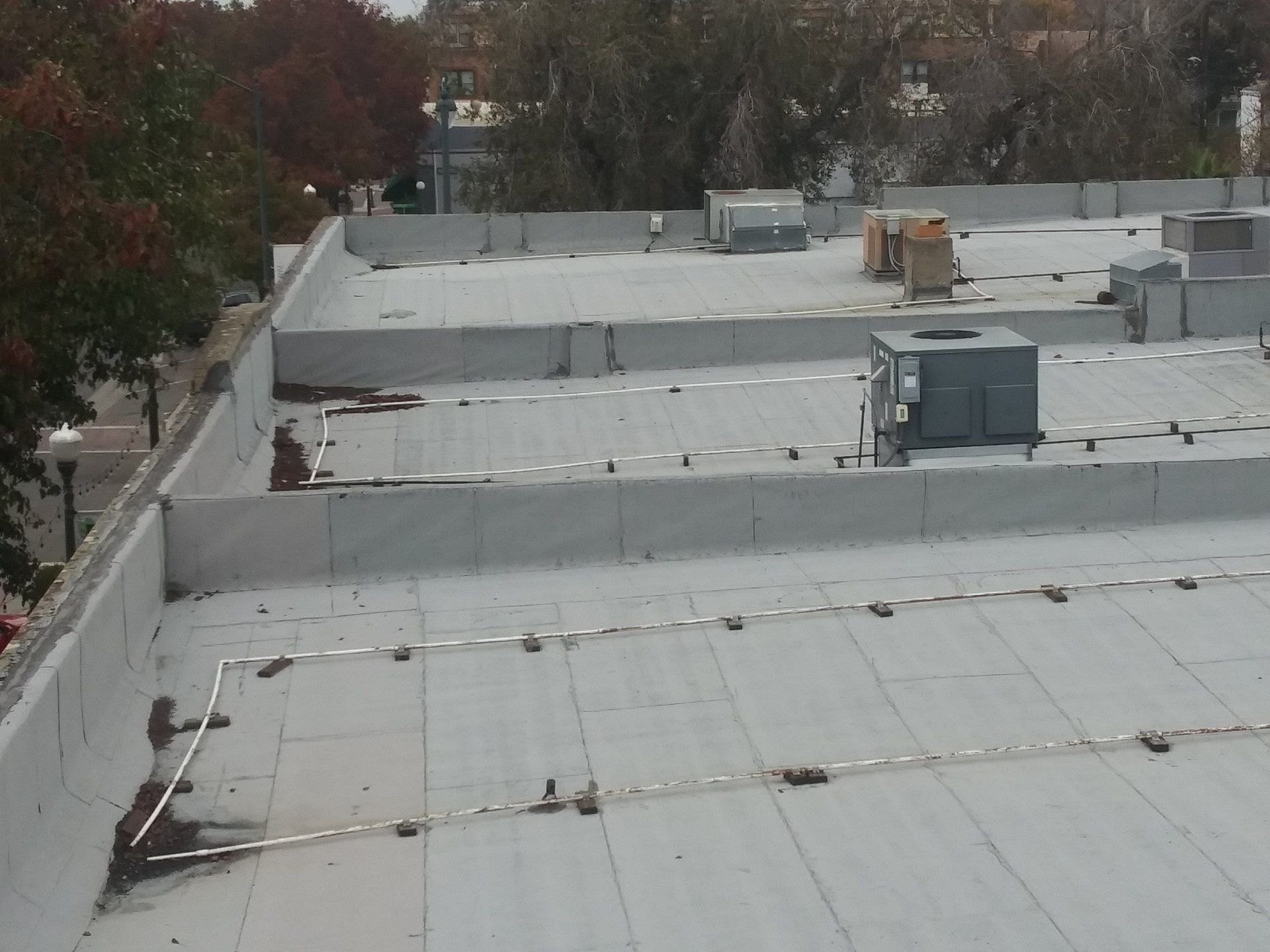 The Tracy Building Staff manufactured a dire scenario in which our parapets (that portion of the wall that extends above the roof) were an imminent threat to the safety of the public. As you can see on the Work We've Done page, our parapets are now reinforced with steel bracing and are safe. Yet the photos below of the roofs of buildings surrounding The Great Plate, including the City's own Grand Theater, do not show the same bracing as we have been forced to install. Maybe someone on the City staff can explain why we were singled out for enforcement?